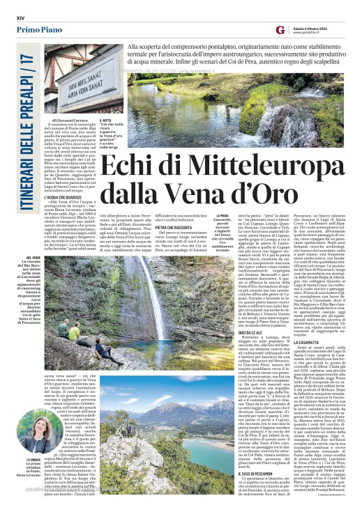 Concludo il mio viaggio tra i sentieri di Ponte nelle Alpi con un po' di nostalgia. Ho incontrato persone davvero speciali, che si sono offerte fin dai primi momenti ad aprirmi le porte, fornendomi informazioni, curiosità e tanti libri! Sono passato dai murales di Quantin alle pietre di Losego, dalle acque magiche della Vena d’Oro, alle colline moreniche attorno a Cugnan. Anche se so che mi perdo per strada qualche persona importante, ringrazio il sindaco Elena Levorato e l’assessore Francesca Bortoluzzi per avermi accolto fin da subito nelle sale del municipio, dove mi hanno ascoltato e assecondato. Poi i capifrazione dei vari borghi senza i quali i sentieri non esisterebbero, la maestra Leandra Viel, instancabile narratrice di storia locale, la sua collega maestra Iris Bernard, che tra le bellezze della sua casa mi ha fatto conoscere pure la bella gatta super attempata Ciusmi (un nome, un programma!), Valeria Prest con la storia degli scalpellini ma anche con le origini della sua famiglia, tutti impegnati ad estrarre la preziosa pietra grigia (e ho pure scoperto chi era quel “sior da Losech”, finalmente!), Renzo Viel che mi ha condotto nella Bus de Barba Checo, raccontato da Olindo, memoria storica della latteria turnaria di Quantin, poi Mario D’Incà che mi ha portato con la mente ai fasti del passato della Vena d’Oro, Augusto Modolo con il quale ho ripassato la storia della Casamatta che già avevo studiato nel 2013 con il mio secondo libro, Paolo De Vettor, instancabile camminatore tra i monti (anche se per lui il Dolada rimane la montagna del cuore!) e infine Andrea Cecchella che mi accompagna da tanti anni nelle mie ricerche tra i monti. Insomma, una bella esperienza davvero, tra i Coi de Pèra. I miei ultimi appunti di questo incredibile viaggio, dal Gazzettino di oggi, edizione di Belluno.