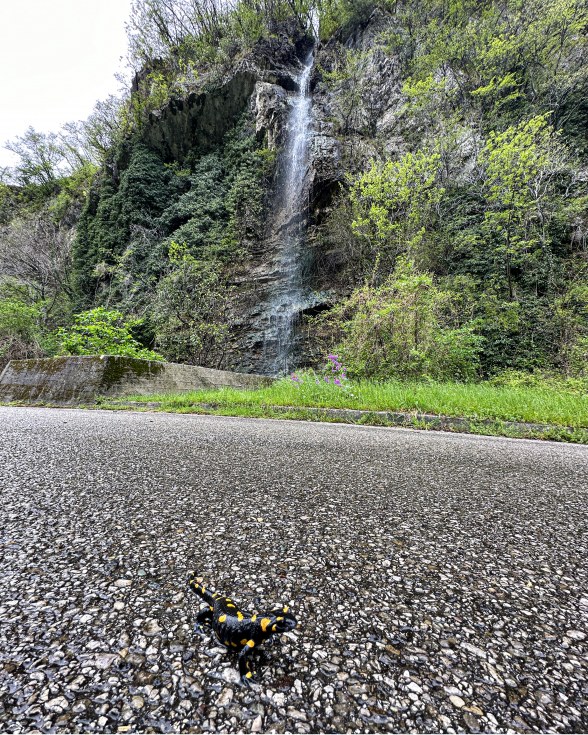 Se la cascata del Valón del Brolo butta, è di buon auspicio per la siccità, parola del re degli anfibi, la salamandra pezzata, custode dell’acqua. E prorompe solo quando ci sono forti piogge, da sempre è così come ricorda la gente del luogo. Fa parte del complesso circuito carsico presente alla base delle Prealpi, in questo caso in Val Lapisina. Le sorgenti in quota sono davvero molto rare: le acque dalla superficie entrano in profondità, dove è presente un potente serbatoio che in prossimità del fondovalle alimenta una linea di polle sorgive, a partire da questa a Pié di Fadalto, del Valón de la Fontana e di Negrisiola sempre in Val Lapisina, fino a quelle di Valmareno e di Follina. Di tutte queste sorgenti carsiche, la più suggestiva dal punto di vista ambientale è quella del Meschio a Vittorio Veneto, meta gettonatissima degli speleo sub, ma ve ne sono altre poste lungo la pedemontana, tra cui si ricordano il Piaveson a Lago e Sottocroda, la sorgente di Santa Scolastica e la Fiadora a Follina, L’Acqua della Madonna e la sorgente Fontaniva a Valmareno, il Fontanon a Stramare.