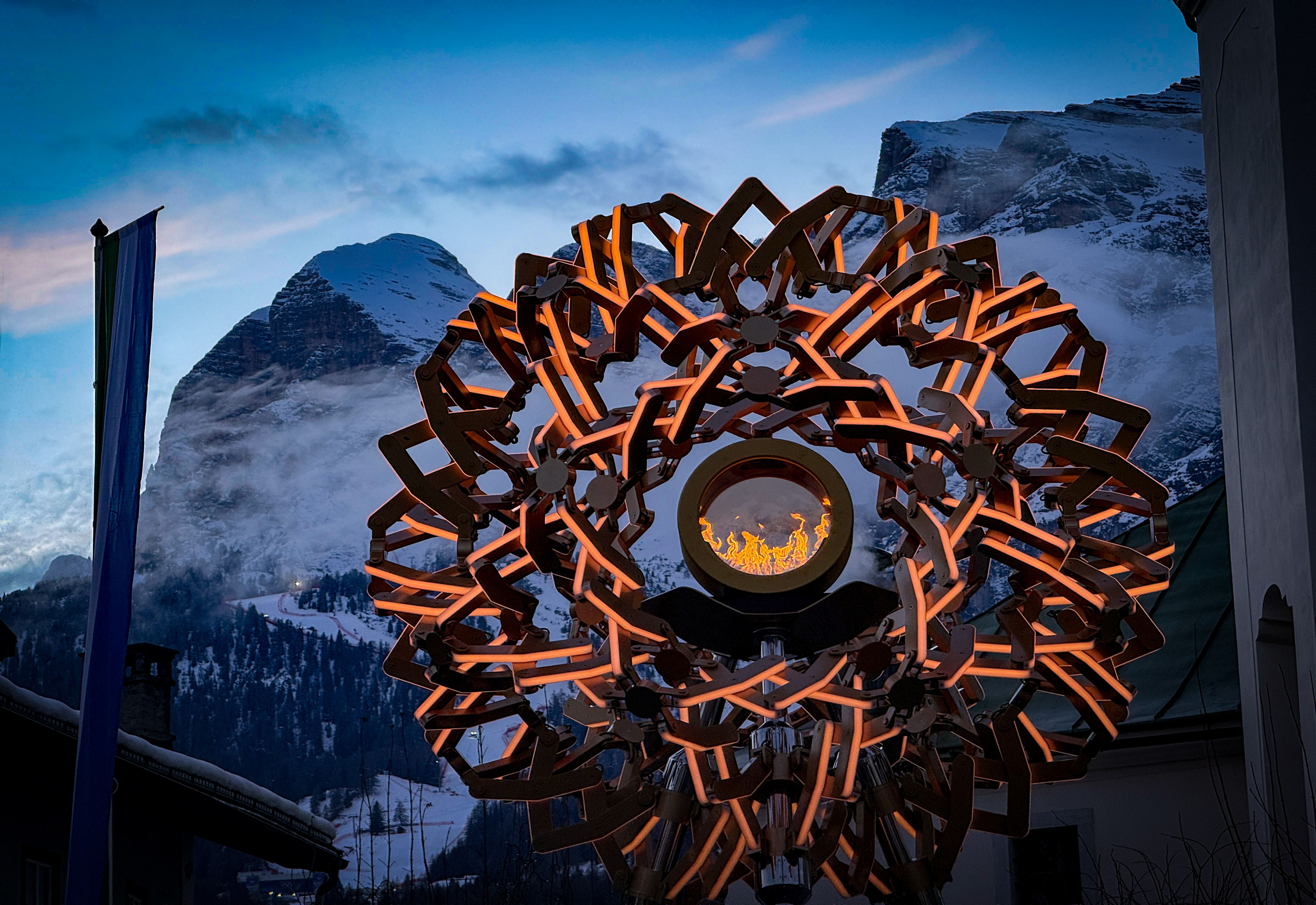 Che effetto fa portare le mie piccole colline tra i giganti dolomitici. Sono salito sull’Alemagna con il pass in bella vista e mi sono trovato in una Cortina diversa, sorprendentemente silenziosa pur piena di persone da tutto il mondo. Atleti, giornalisti e televisioni, gruppi di tifosi con i colori delle bandiere dipinti sulle guance, una presenza rassicurante delle forze dell’ordine ai check point e a passeggio per la città. La giornata era partita grigia, poi il sole si è fatto strada tra le nuvole donando luce, colori, allegria. A Casa Veneto ho raccontato il Cammino delle Colline del Prosecco di Conegliano e Valdobbiadene e la mia vita di camminatore. Uscendo, ho alzato lo sguardo al braciere olimpico. Dietro la fiamma, in lontananza, la Tofana di Rozes imbiancata. Il mio diario di viaggio a Cortina durante le Olimpiadi è qualcosa che va oltre le parole, una di quelle giornate che resteranno per sempre.