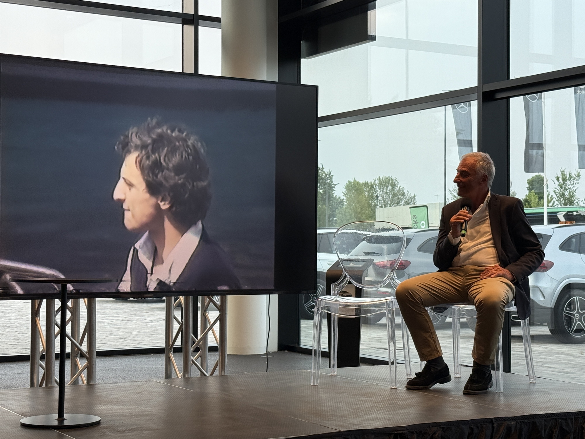 Durante l’incontro di ieri sera con Riccardo Patrese è stata proiettata a sorpresa una sequenza di immagini inedite che avevo girato da ragazzo con una videocamera Betamax nel GP di Monaco 1985, tra box, paddock e porto. Per quarant’anni era rimasta nel cassetto… e quale occasione migliore per tirarla fuori proprio con lui! Patrese ha commentato uno ad uno i fotogrammi: Senna agli esordi, Johansson in Ferrari dopo il “caso Arnoux”, Chiti, Poltronieri, Regazzoni, Zakowski, la famiglia reale di Monaco, Loredana Bertè… e un James Hunt in perfetto “stile Hunt”, a torso nudo sullo yacht, tra sigarette e mondanità. E poi, la scena più inaspettata: Patrese alla guida di… beh, lo vedrete nel video tra poco online. Non mancate.