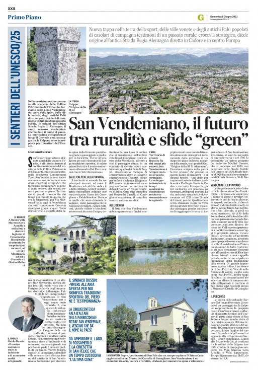 San Vendemiano non deve essere banalizzata per avere l’uscita autostradale, perché basta staccarsi di qualche metro dalle trafficatissime strade per ritrovare palazzi, chiese campestri, risorgive, corsi d’acqua e splendidi boschi che ricoprono le colline. E una ciclopedonale adatta a runners e camminatori. Dal Gazzettino di oggi, San Vendemiano, dove nasce l’antica Strada Regia di Alemagna.