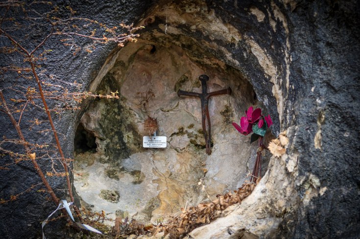 “Proteggi gli appassionati dei sentieri evidenti”, recita una placca di metallo a fianco di un crocifisso incastonato nella roccia. Un avvertimento a non azzardare tracciati fuori pista. E in effetti, se si percorre il Troi del Cul de la Caliera, si comprende subito il senso di quel messaggio, questo è un itinerario da affrontare solo se si è esperti. Andiamo a scoprire questo tracciato poco conosciuto, riaperto di recente da Igino Lorenzon e Pierluigi Tomasi, che collega i sentieri della Scaletta e dell’Alberea nella valle di Cison di Valmarino.