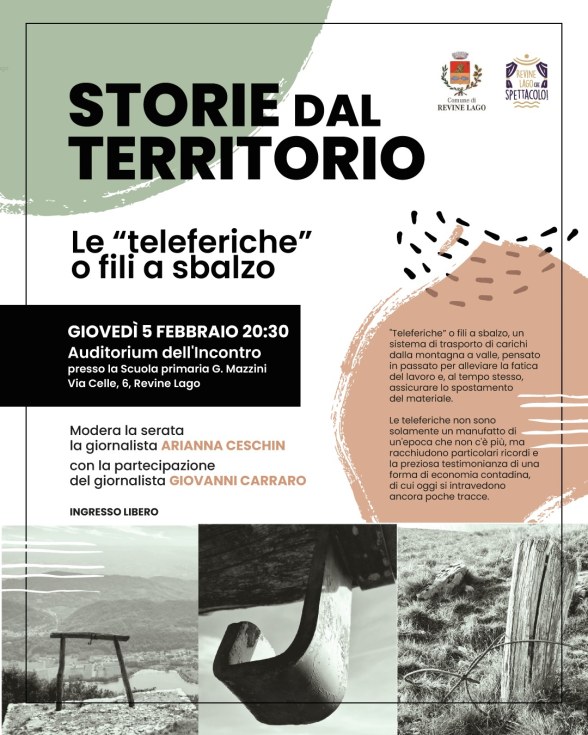 Dopo le pubblicazioni dedicate ai fili a sbalzo, che hanno trovato riscontro anche fuori regione, dalla Val d’Ossola alla Toscana fino alla Calabria, ecco il momento che riassume tutto. Un convegno indetto dal Comune di Revine Lago che si svolgerà a Santa Maria giovedì 5 febbraio. Credo sia la prima volta che si organizza un incontro pubblico interamente dedicato a queste primordiali teleferiche. Abbiamo raccolto materiali, testimonianze e tracce sul territorio tra il Canal del Brenta e il Cansiglio. Ora li mettiamo insieme. Venite, ne vale la pena.