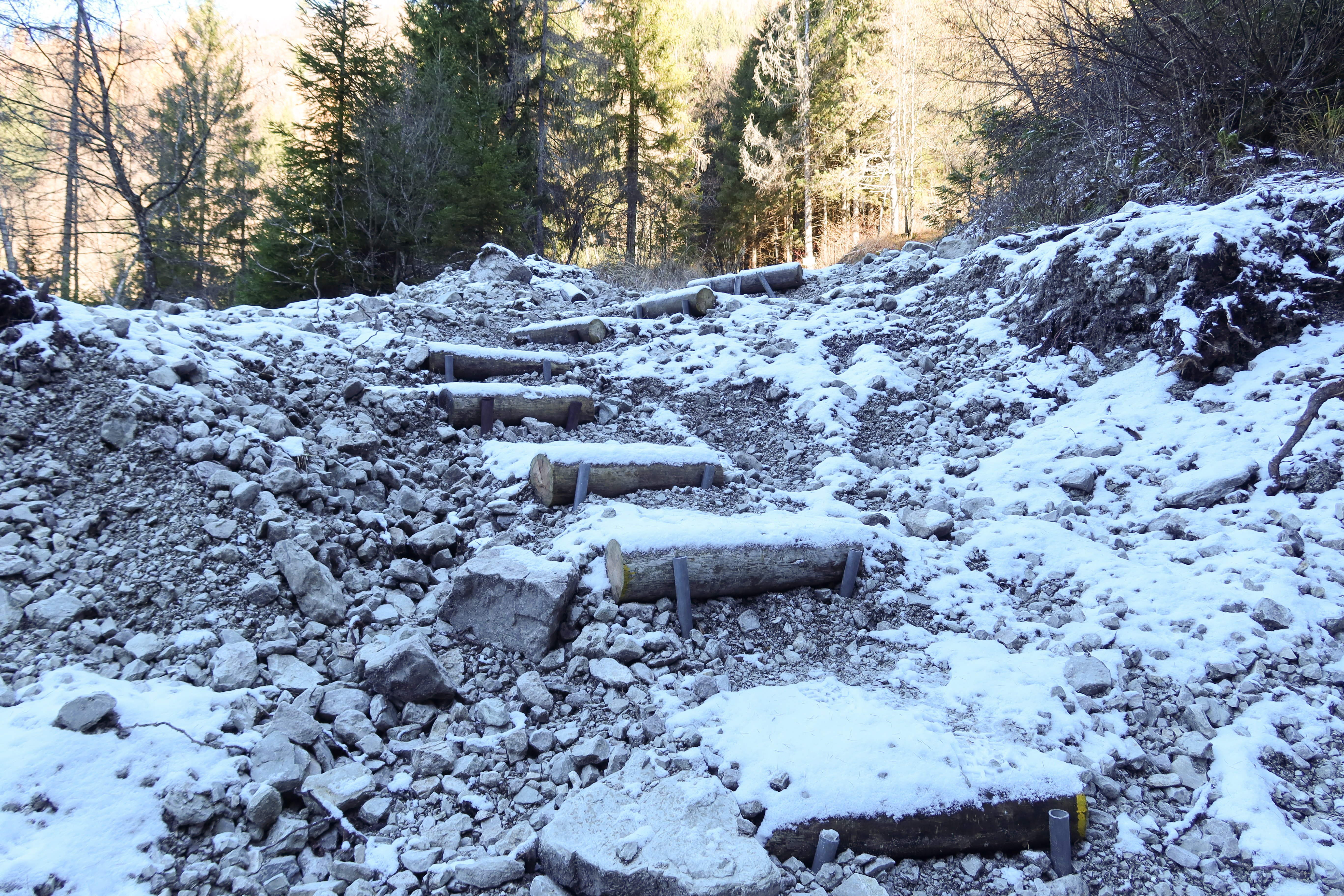 Lavori in corso sul sentiero n.2008 del Nevegal tra Casera Begher e il Villaggio Olimpo dopo che la frana aveva interrotto il tracciato. Grazie all’impegno di Nevegallika (Garaboni, Ducapa, D’Incà e altri volontari) è stato aperto un varco sul versante nord con gradoni rinforzati da tronchetti di legno e resta ora da intervenire sul lato sud. Ringrazio di cuore chi ha dedicato tempo ed energie a questo intervento. L’anello del Col Canil tornerà percorribile e sarà presente nel prossimo libro (itinerario n.12, tempo di percorrenza 3 h, dislivello positivo D+ 289 m, distanza 8,4 km, difficoltà E).